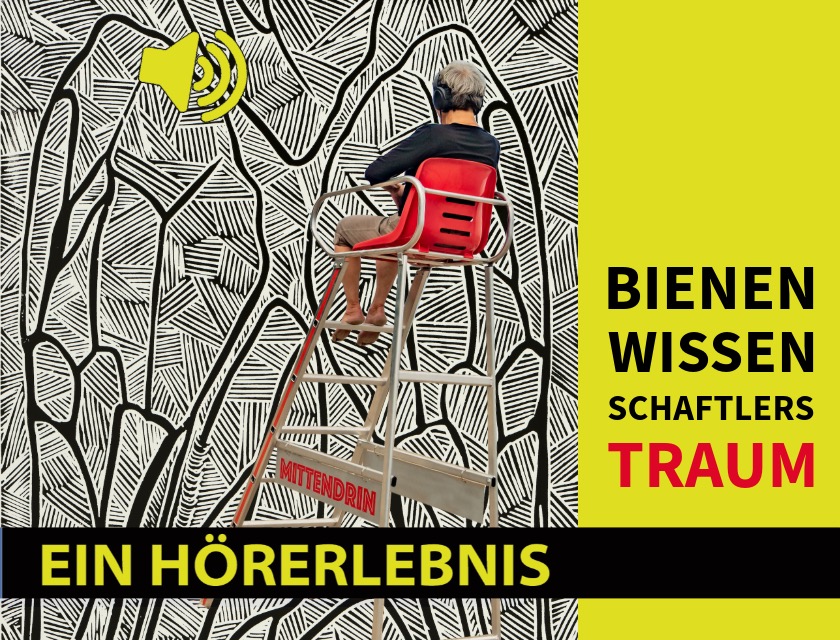 Wissenschaftliche Erkenntnisse, Fabulierungen, Töne und Gefühle verweben sich miteinander im Hörstück der Künstlerin und Autorin Bettina Thierig begleitet vom Kontrabassisten Florian Gallow in „Bienenwissenschaftlers Traum“.
